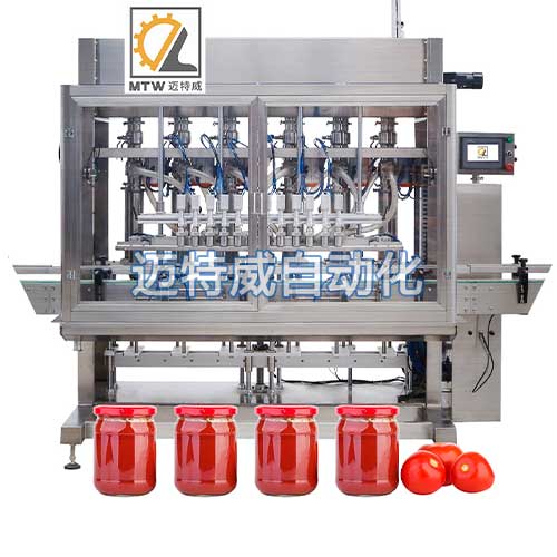像辣椒醬這種高粘度的,該如何選擇灌裝機(jī)呢,活塞式灌裝機(jī)是很好的選擇,它采用伺服電機(jī)來控制灌裝量,通過活塞在缸體中,往返運動來實現(xiàn)灌裝,不會造成物料堵塞問題,如果想要調(diào)節(jié)灌裝量,可在控制面板,一鍵調(diào)節(jié),使用方便,配有自動攪拌功能,結(jié)構(gòu)簡單、度高、操作更加簡便。