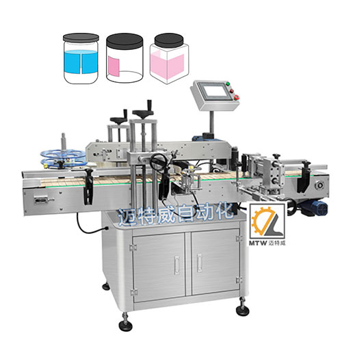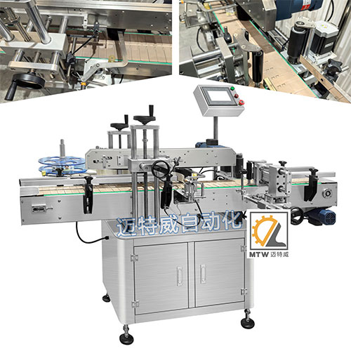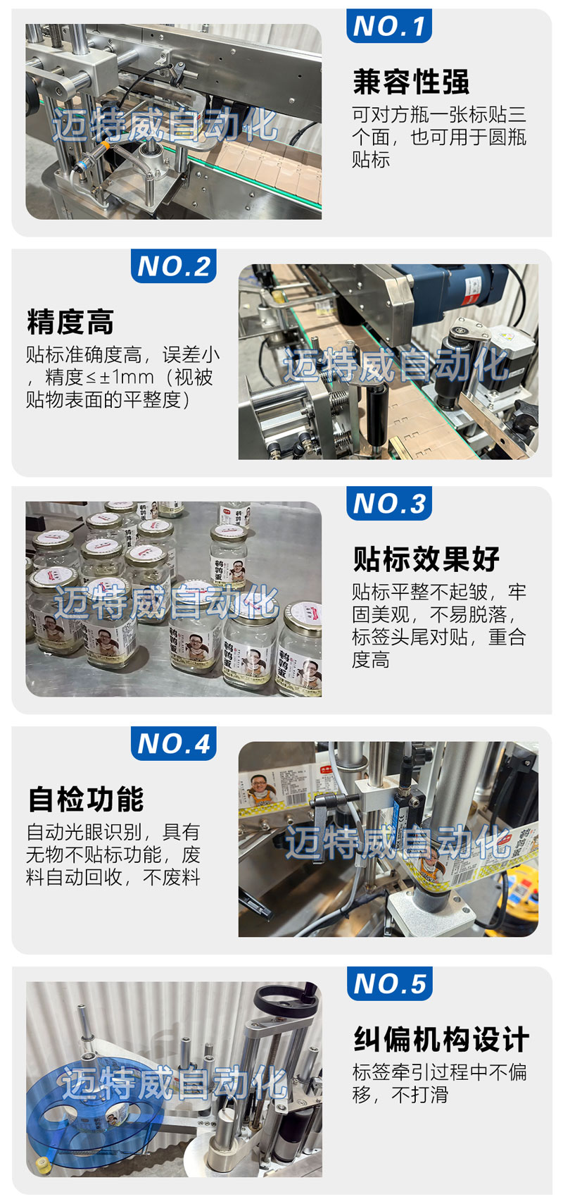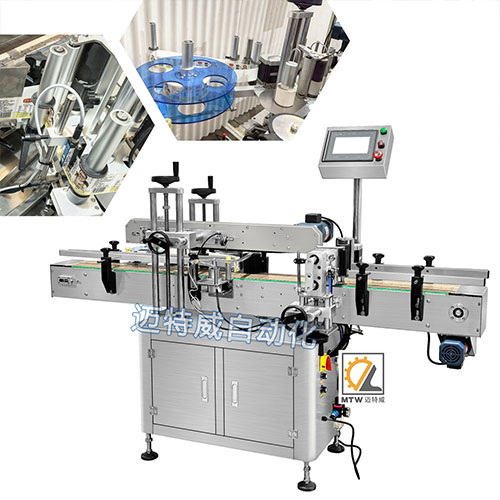 全自動(dòng)單面貼標(biāo)機(jī)可用于方瓶一張標(biāo)貼三個(gè)面,也可用于圓瓶貼標(biāo)。