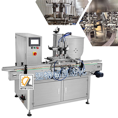 雙頭伺服灌裝機采用伺服活塞定量灌裝,單頭灌裝,設備投入少,走瓶速度快,效率高,灌裝容量100-1000ml,適用于醬料、膏體、液體和粘性物料灌裝。