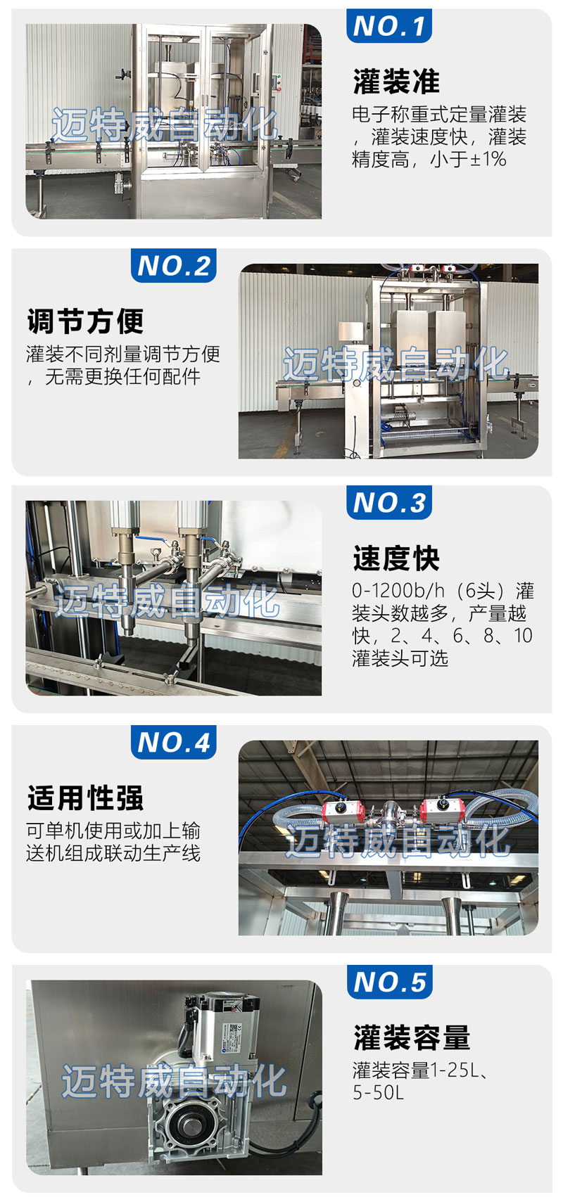 ● 稱重式灌裝機采用電子稱重式定量灌裝,灌裝速度快,灌裝精度高;