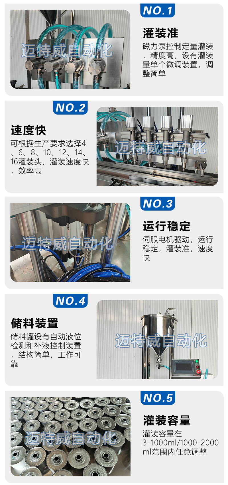 SF-D系列多頭全自動磁力泵液體灌裝機(jī)適用于灌裝低粘度水性液體或油性液體。