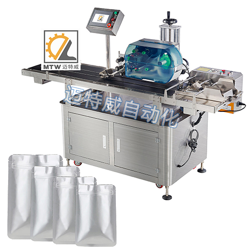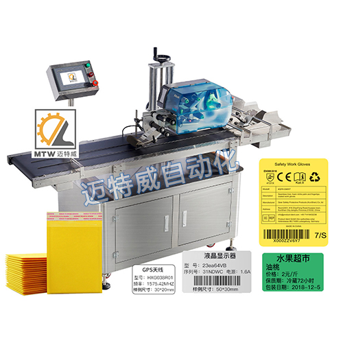 該設備適用于適用于紙張、鋁箔袋、紙袋、商標卡、合格證等平面片狀物體表面的自動打印和貼標。可在空白標或預留標上在線打印生產日期批號、序列號、條形碼、二維碼、品名、專銷區等預設內容并完成同步貼標。