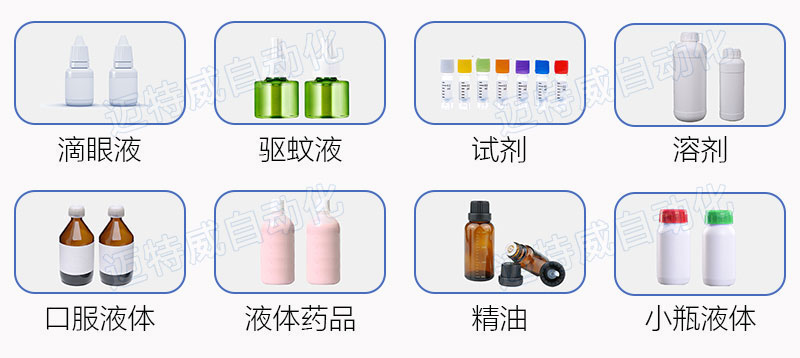 滴眼液?jiǎn)晤^磁力泵灌裝機(jī)適用于0.5-10、2-20、5-50、10-100ml的玻璃瓶、塑料瓶的自動(dòng)理瓶、灌裝、上蓋旋蓋等,可以配上貼標(biāo)機(jī)同步完成瓶身的自動(dòng)貼標(biāo)。如滴眼液、驅(qū)蚊液、試劑、溶劑、口服液體、醫(yī)藥液體、精油、及其他小瓶液體灌裝。