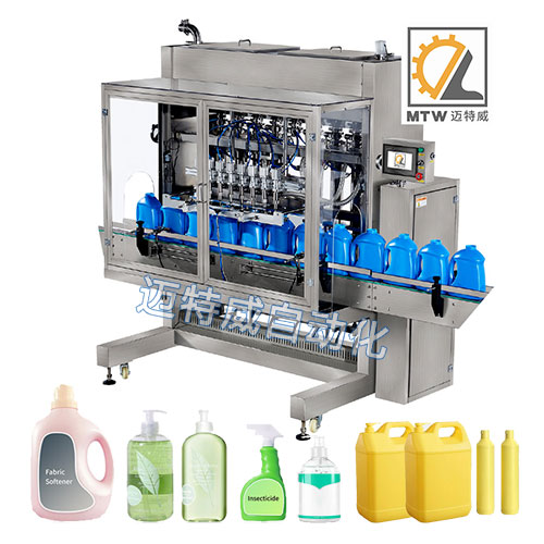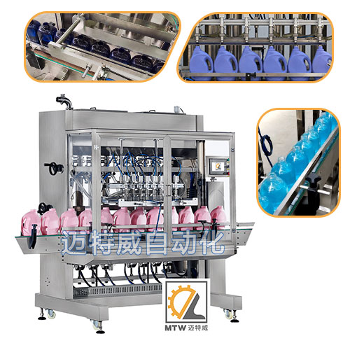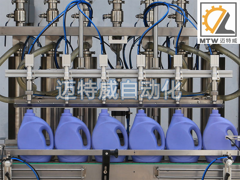 洗衣液/洗潔精灌裝機采用伺服活塞灌裝機灌裝,活塞缸體控制灌裝量,灌裝準,灌裝量可在100-1000、200-2000、500-5000ml范圍內(nèi)任意選擇調(diào)整,適用于不同瓶型的日化用品在線自動灌裝,水乳膏一機兼容。