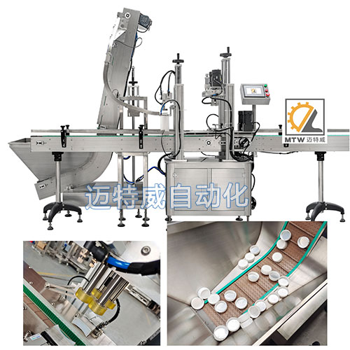 自動提升上蓋旋蓋機主要適用于醫藥、日化、食品、酒水、飲料、糧油等行業圓型、扁型、方型等容器的螺紋蓋的自動理蓋上蓋和旋蓋。可單機使用,亦可與灌裝機、貼標機、噴碼機等組成聯動生產線。