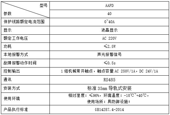 故障電弧探測器適用于工業(yè)與民用建筑中10KW及其以下的電氣線路,其保護(hù)線路長度不宜大于100米。產(chǎn)品遵循國標(biāo)GB 14287.4-2014,可適用于養(yǎng)老院、學(xué)校、商業(yè)建筑、賓館、工廠、庫房、圖書館、辦公室、家庭住宅、以及娛樂場所等。訂貨范例: